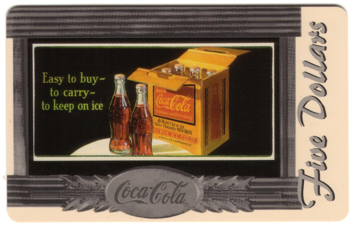 Overall, this $5 silver collectible card celebrates Coca-Cola’s branding and is officially marked for a 1996 collection, clearly numbered within a ten-piece series connected to The Score Board Inc. The card’s design centers on Coca-Cola logos and text without additional images or characters present.