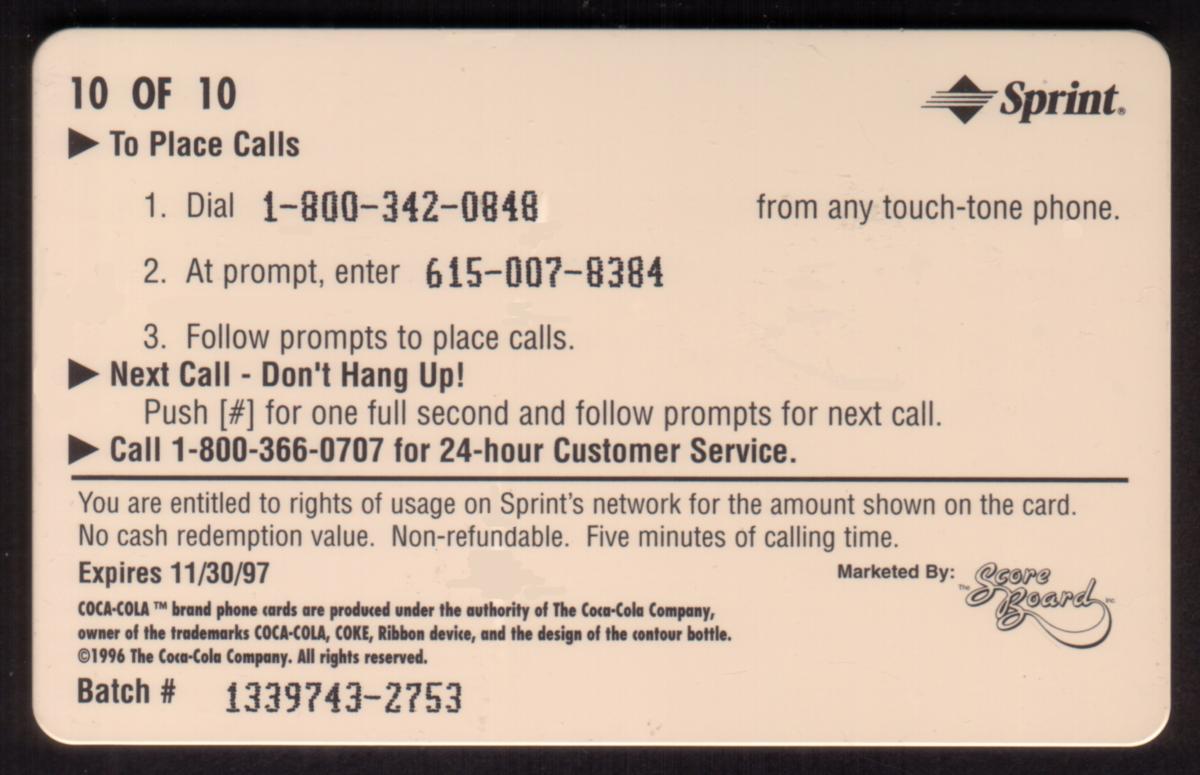 Since we have the world's largest inventory of USA phonecards for collectors, you will not necessarily receive the identical serial/batch/PIN number that we have scanned/pictured.