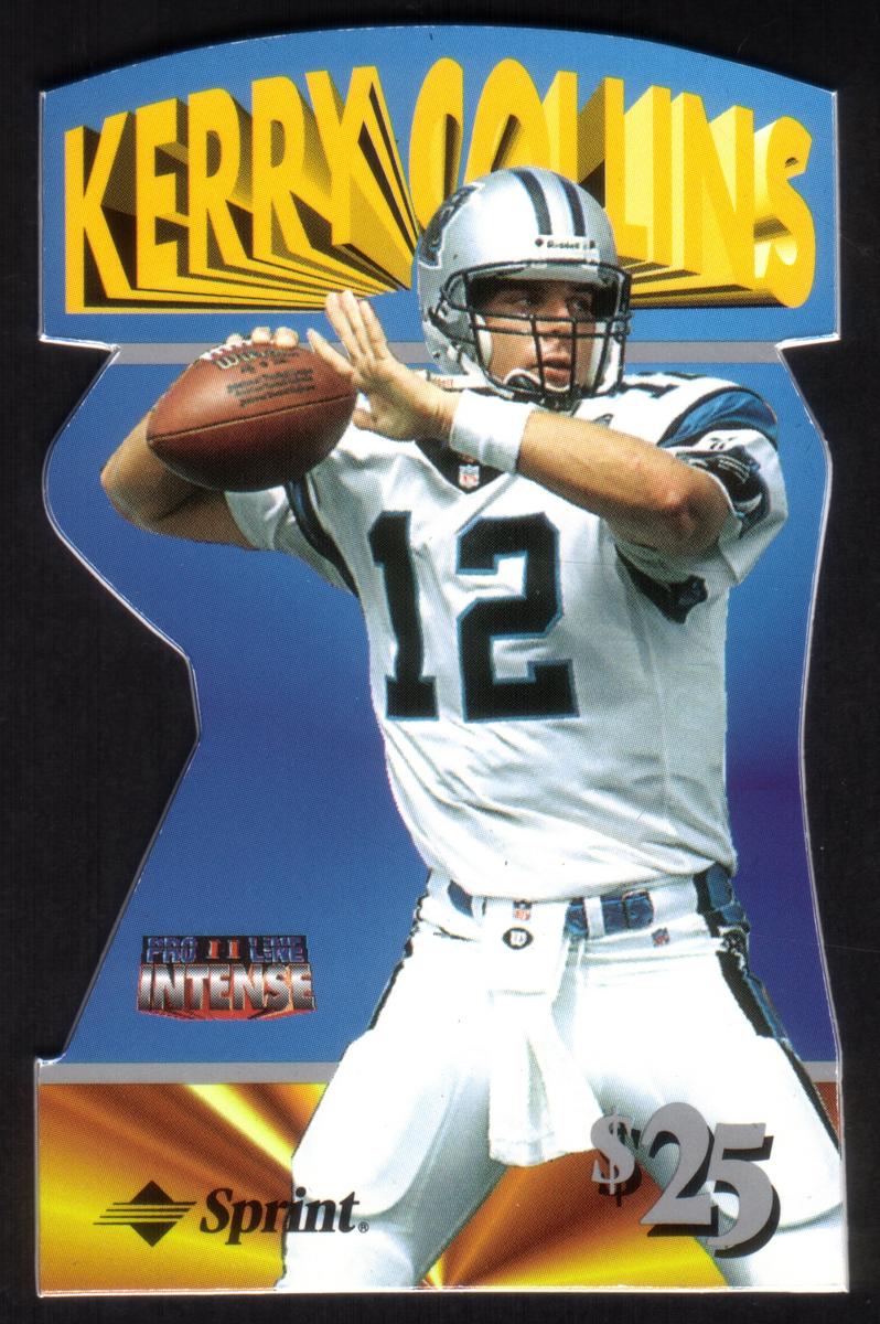 This card is part of a sports collectible set issued in 1997 and specifically honors Kerry Collins, a professional NFL player. It is associated with the National Football League and is recognized as an official football player collector’s item with a $25 value denoted on the card.