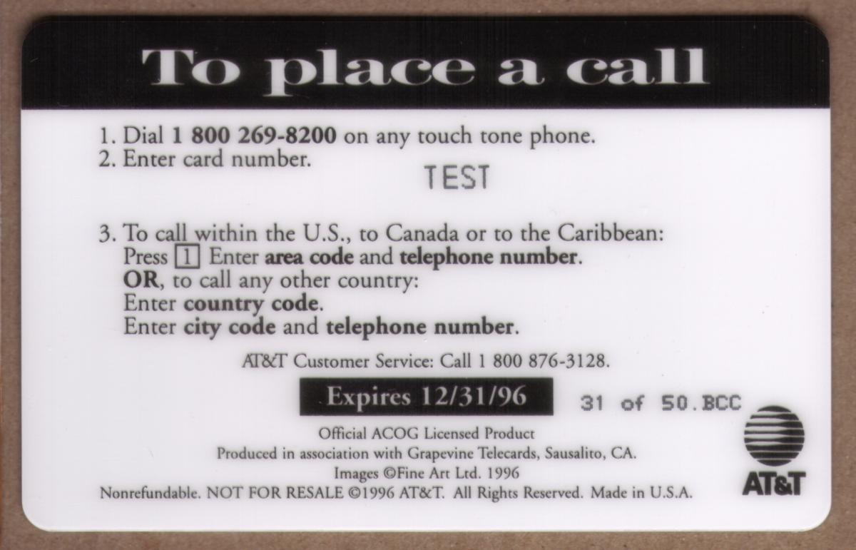 Since we have the world's largest inventory of USA phonecards for collectors, you will not necessarily receive the identical serial/batch/PIN number that we have scanned/pictured.