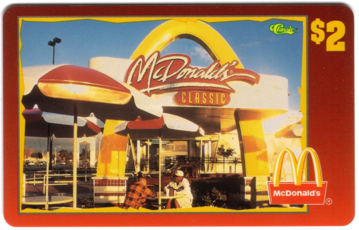 Overall, the card serves as a collectible tribute to McDonald's, showcasing the fast food chain’s cultural presence in 1996 through its classic drive thru imagery and the Golden Arches branding.