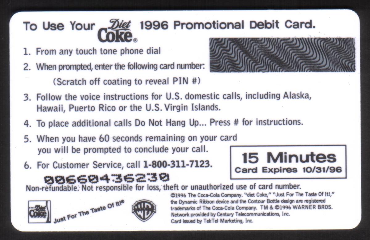Since we have the world's largest inventory of USA phonecards for collectors, you will not necessarily receive the identical serial/batch/PIN number that we have scanned/pictured.