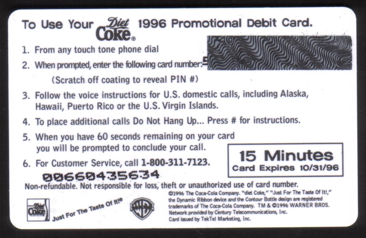Since we have the world's largest inventory of USA phonecards for collectors, you will not necessarily receive the identical serial/batch/PIN number that we have scanned/pictured.