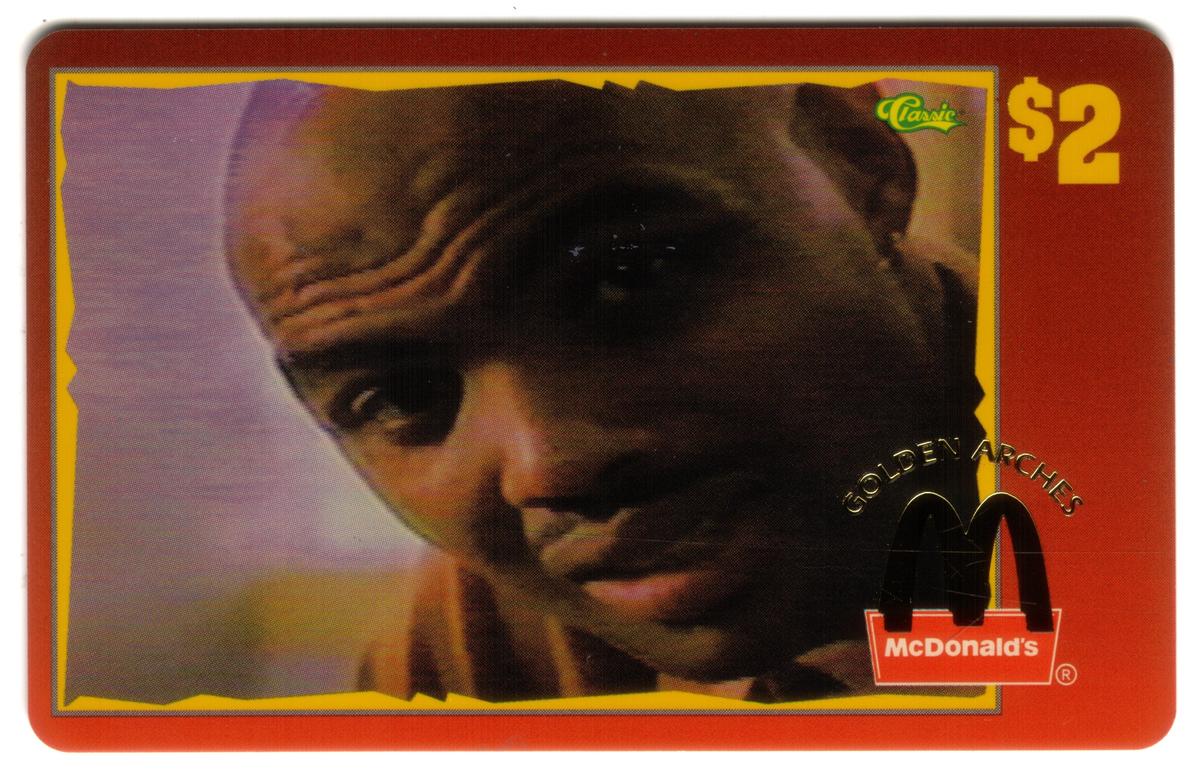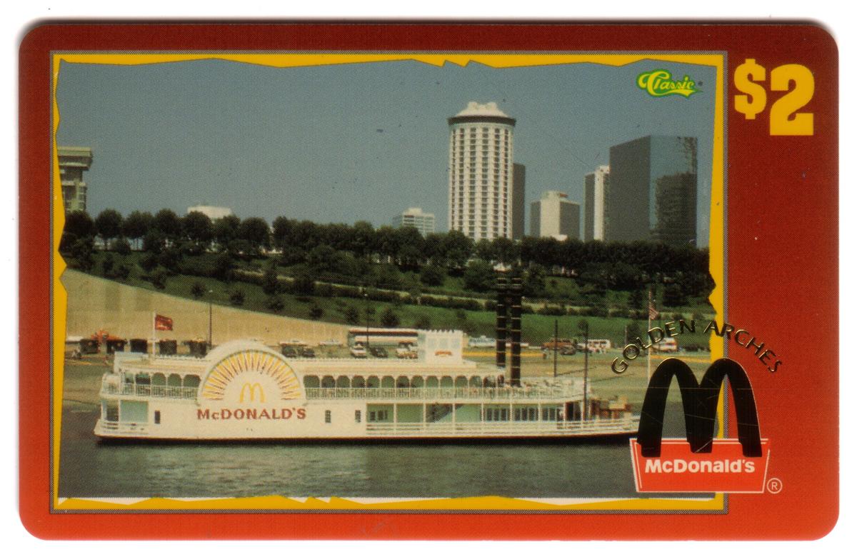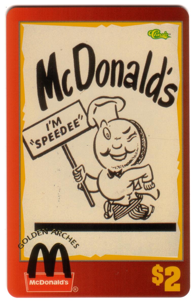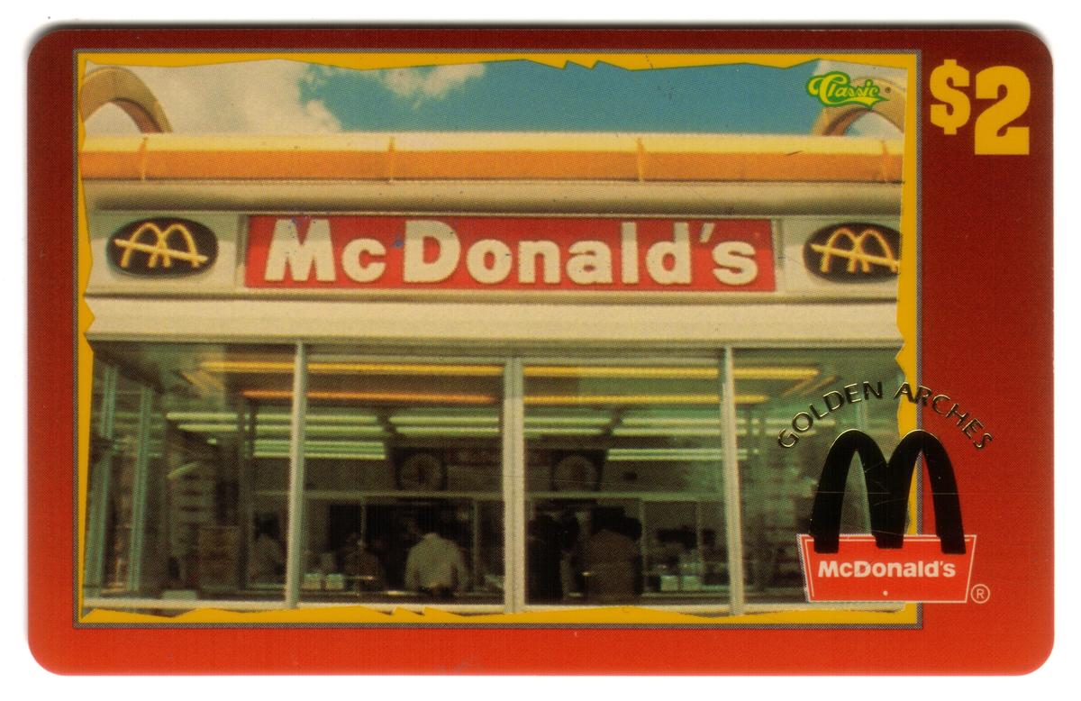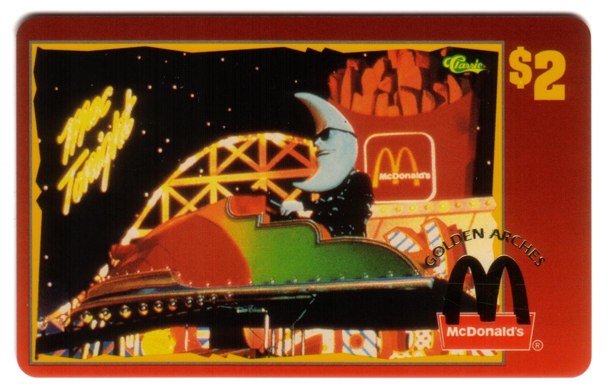A portion of the set showcases different eras of McDonald’s signage and advertising styles, including neon signs at night, classic roadside and drive-in designs, and playful mascots such as “Speedee” and the “Mac Tonight” moon character. The cards present various retro McDonald's menus and promotional materials complete with vintage prices for items such as hamburgers, cheeseburgers, malts, and fries. Other snapshots include scenes from famous McDonald’s locations, nighttime shots of a casino marquee advertising “QUARTERMANIA SLOTS” alongside McDonald’s neon signs, and whimsical images like Ronald McDonald with a tray or pointing towards a calendar promotion. The set vividly celebrates McDonald’s rich advertising history, worldwide presence, and cultural impact through diverse, collectible imagery.