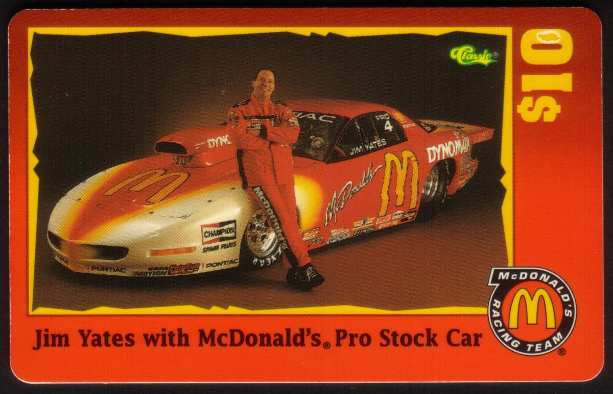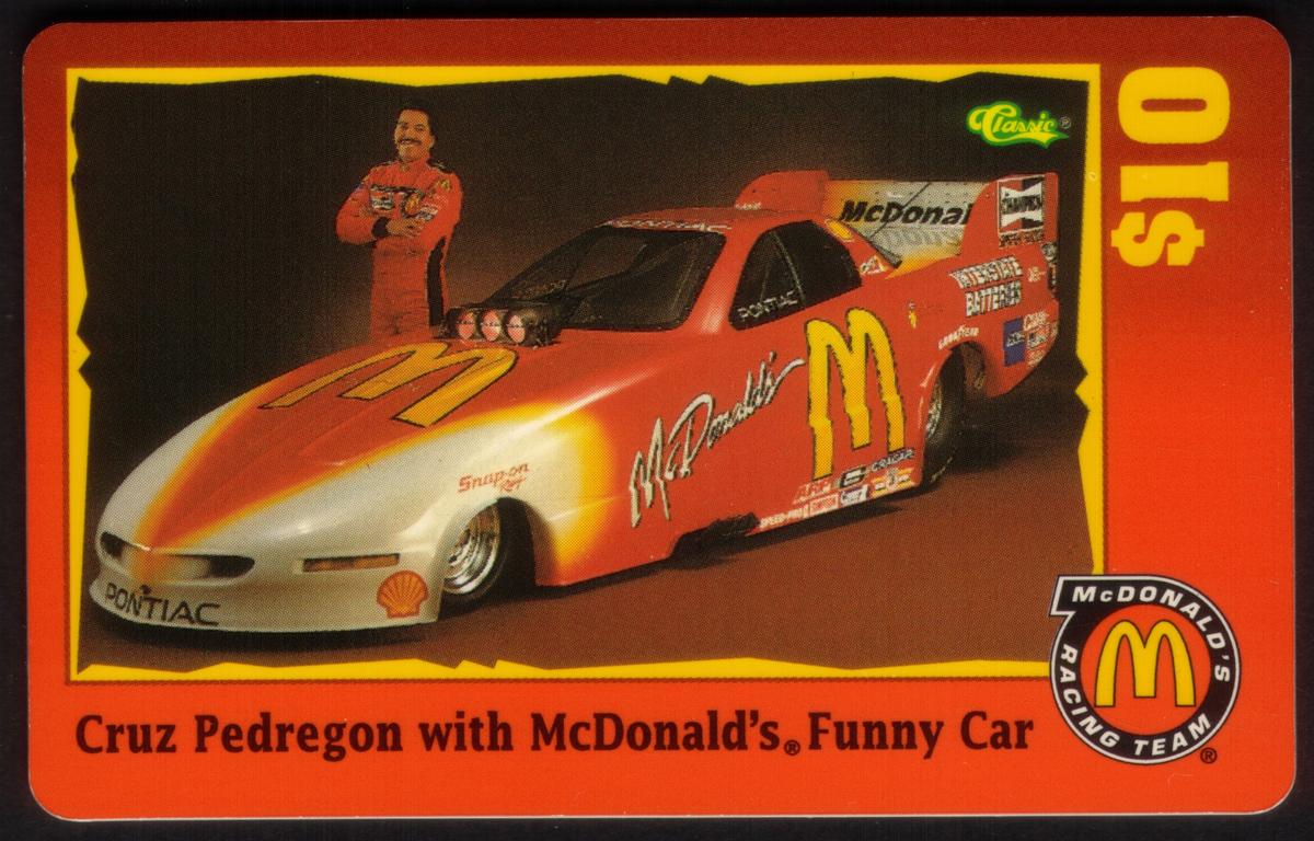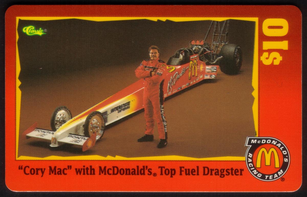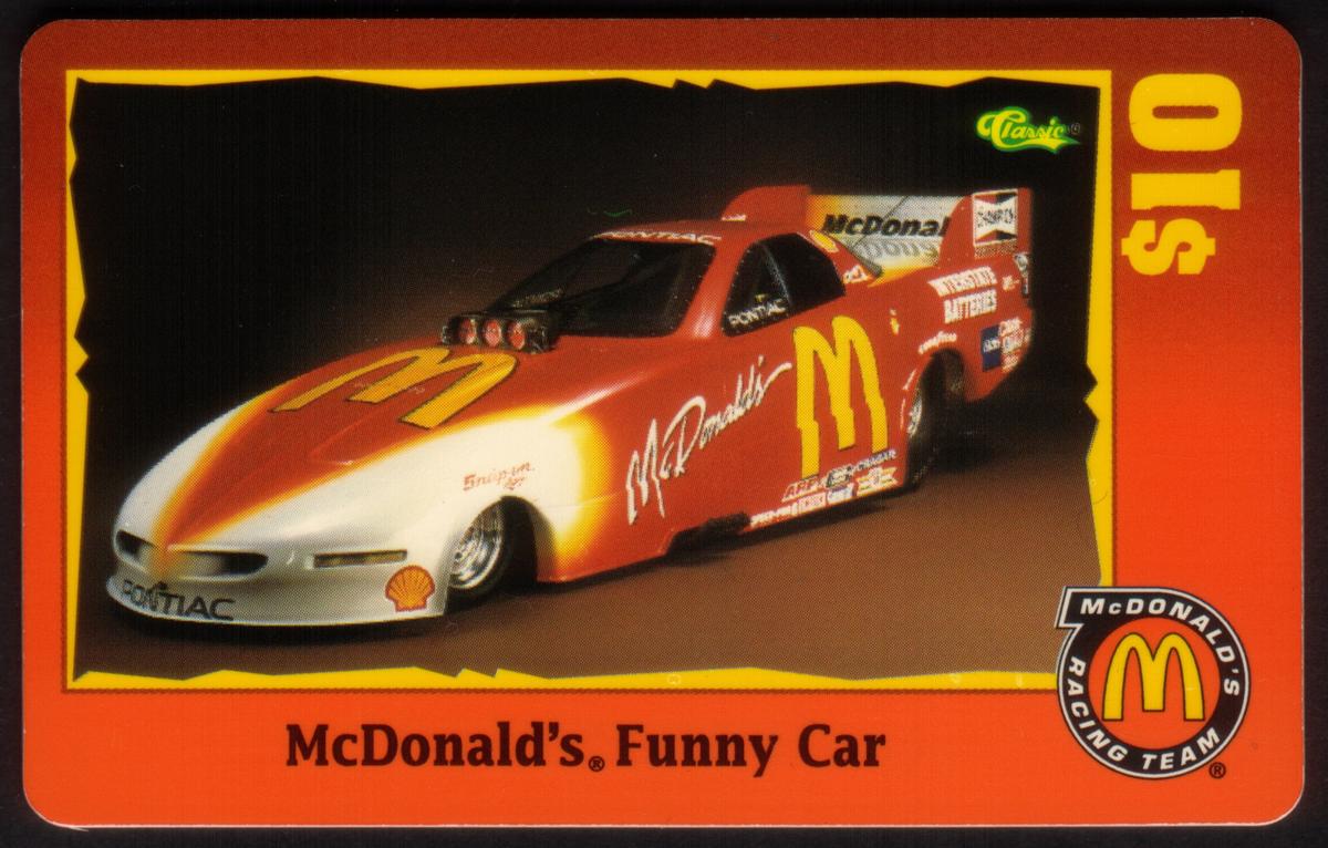 This collection showcases McDonald's branding and its association with professional auto racing. The consistent design and clear depictions of famous drivers and cars make it an important set for racing fans and collectors focused on 1990s drag racing teams.