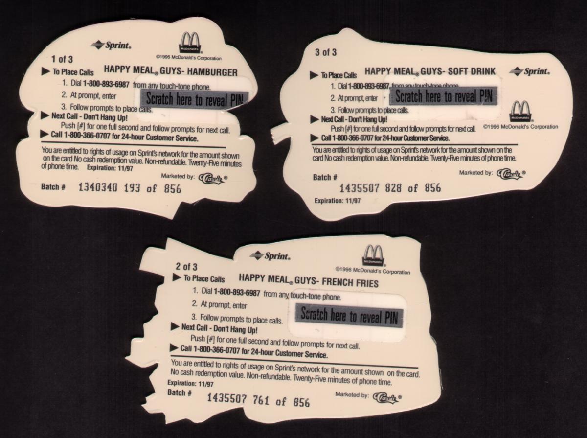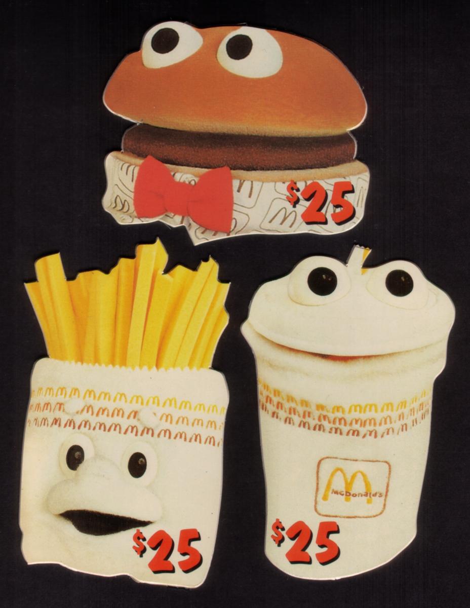 All three cards are die-cut to match the shape of their individual characters and belong to a distinctive McDonald's series related to the fast food chain’s branding and classic menu items.