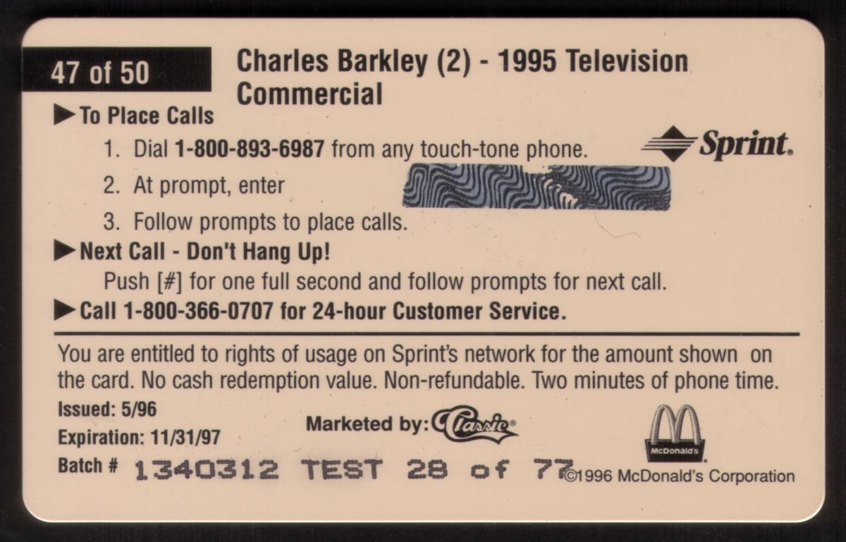 This card is part of a series tied to a McDonald’s 1996 television advertising campaign featuring Charles Barkley. It highlights his celebrity status as a sports legend and MVP involved in this promotion by the fast food chain.
