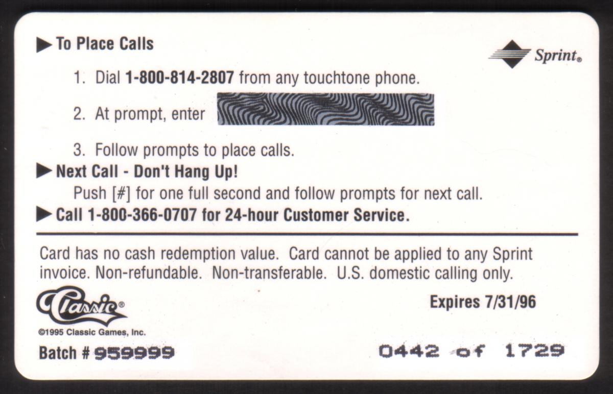 Since we have the world's largest inventory of USA phonecards for collectors, you will not necessarily receive the identical serial/batch/PIN number that we have scanned/pictured.