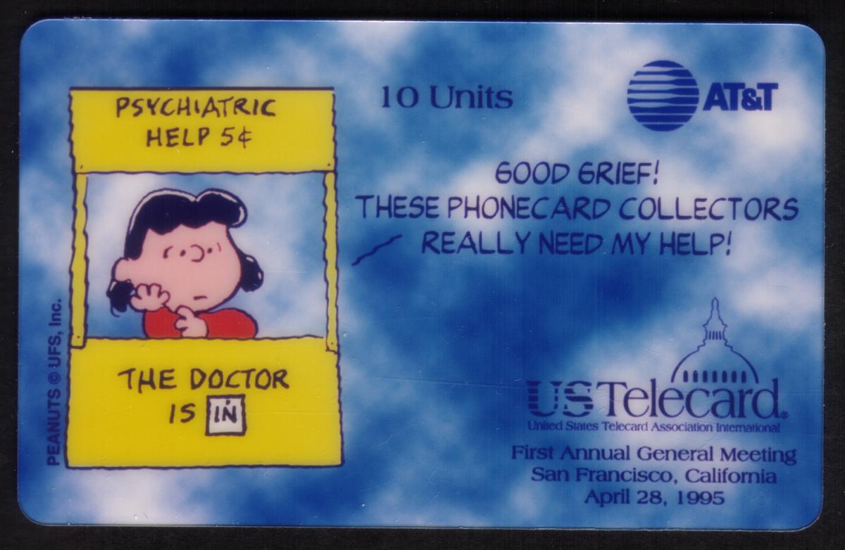 Keywords: cartoons, comics, comic strips, animation, Peanuts, Charles Schul cartoon characters, snoopy, dogs, animals, Lucy, at&t, att, ustai, unites states telecard association international, san francisco california, the doctor is in, Winston Taylor (ATT)