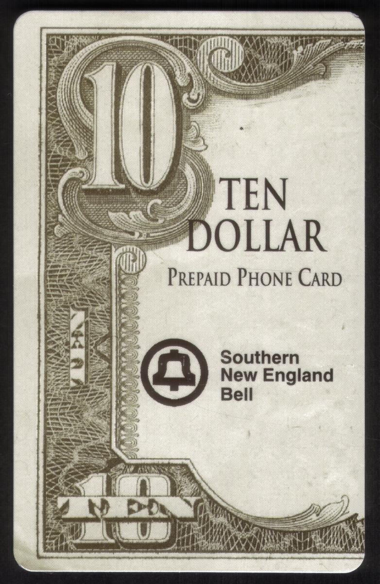 Visually, the card presents a clean and clear design focusing on the monetary imagery and essential textual elements without additional graphics or embellishments. The combination of currency imagery and the reference to Southern New England Telephone indicates this card’s role as a promotional collectible tied to U.S. ten-dollar bills and SNET services.