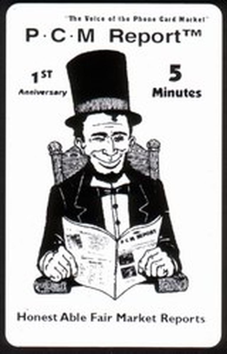 At the top of the card, the text “5m PCM Report (1st Anniversary)” is prominently displayed, indicating the occasion the card commemorates. The card also includes the name “Abe Lincoln Reading (B&W Promo),” associating the image explicitly with Abraham Lincoln and emphasizing the promotional nature of the card. The bottom section contains references to “JAG Worldwide Inc.,” the company associated with the release.