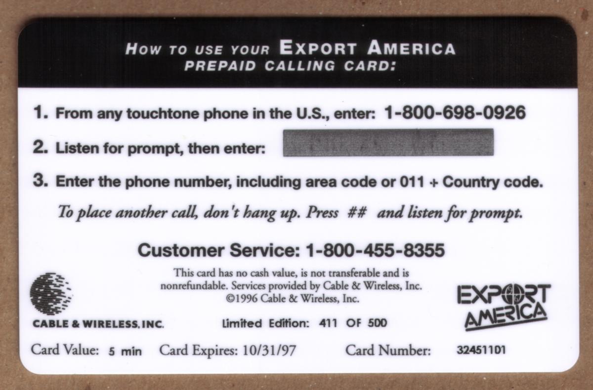 This card aligns with themes involving corporations, business, trademarks, advertisements, and global connections. It serves as a collectible item tied to the concept of international export and the communications company Cable & Wireless, Inc.
