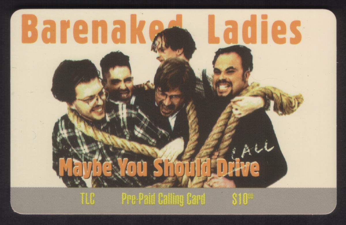 This collectible card features the cover art from the album "Maybe You Should Drive" by Barenaked Ladies, a well-known alternative rock band. The card prominently displays the band’s name, "Barenaked Ladies," along with the album title "Maybe You Should Drive." The design includes a photographic image consistent with the album’s cover, showcasing artistic elements typical of the music series related to this group.