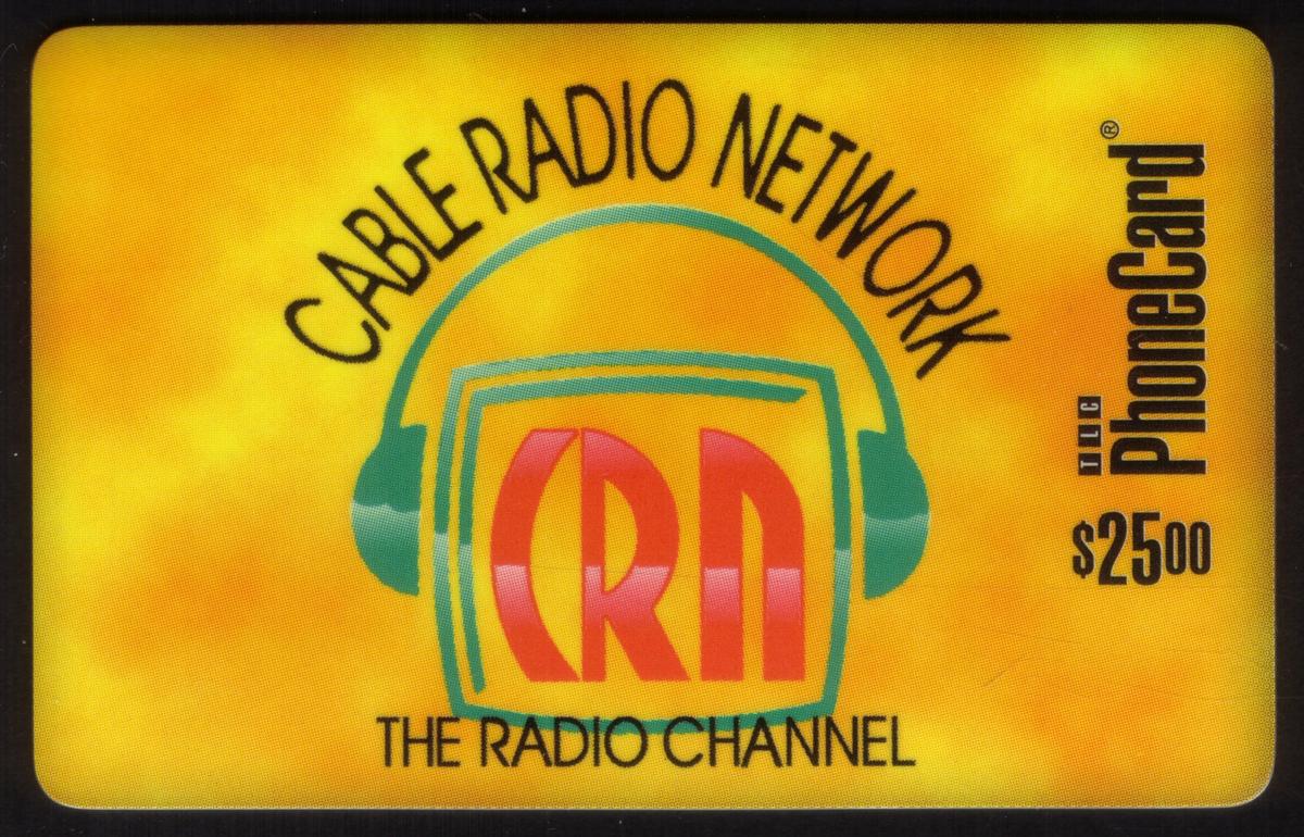 This collectible phone card represents a piece of radio and media history, reflecting Cable Radio Network’s presence in the market. The card’s design is straightforward and functional, intended for promotional use and collecting, emphasizing its $25 monetary value and the network’s identity without extraneous graphics or thematic visuals beyond the essential branding and text.