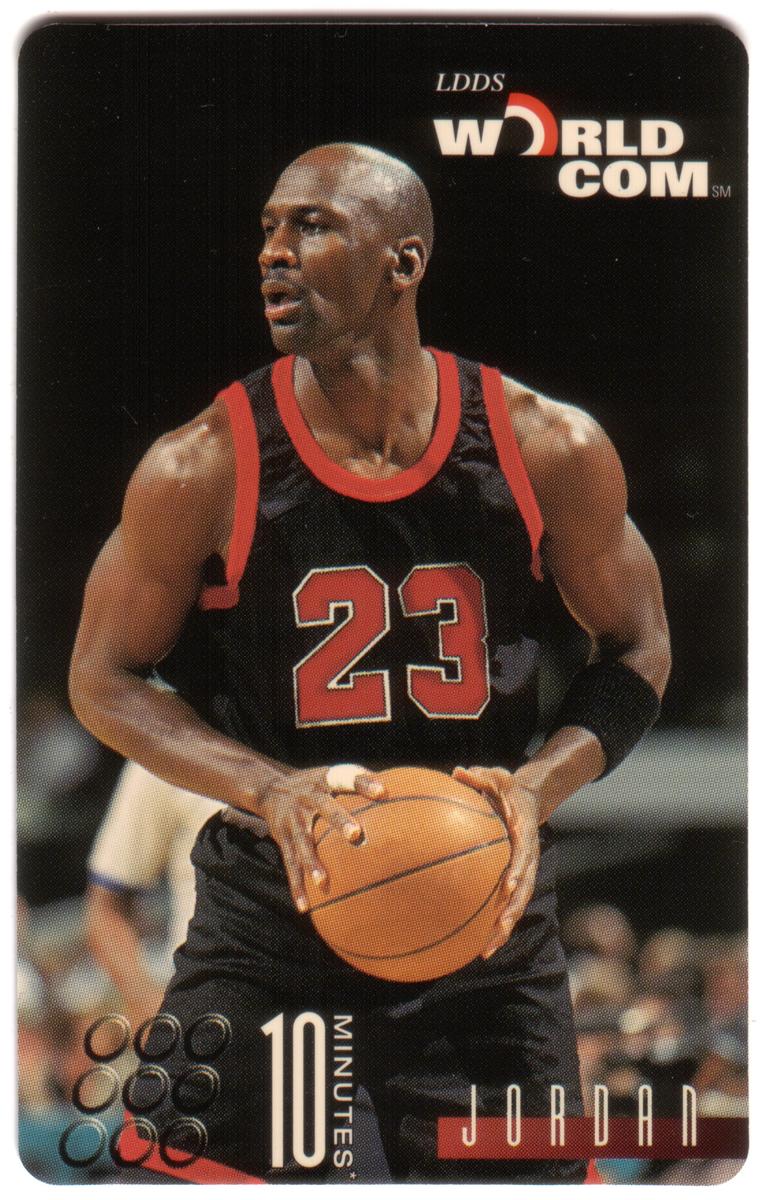 The card is branded with "LDDS WorldCom" in the top right corner, indicating the issuer. Toward the bottom, the card denotes a value of "10 minutes" for phone usage. The name "JORDAN" appears at the lower right in white uppercase letters on a red banner strip.
