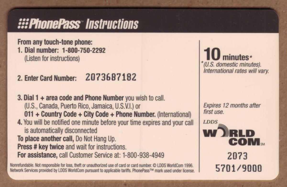 Since we have the world's largest inventory of USA phonecards for collectors, you will not necessarily receive the identical serial/batch/PIN number that we have scanned/pictured.