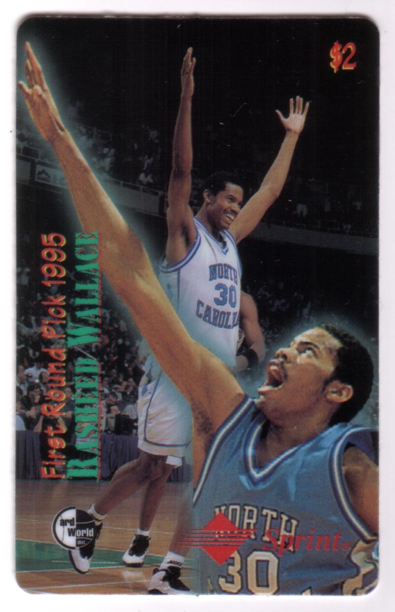 No other logos besides NBA and Sprint, player photo, and textual information are present on the front side. The card format aligns with collectible sports memorabilia focused on basketball athletes and rookie cards from the mid-1990s. This card captures a key moment from Rasheed Wallace’s early professional career and ties into Sprint’s promotional efforts centering around NBA players.