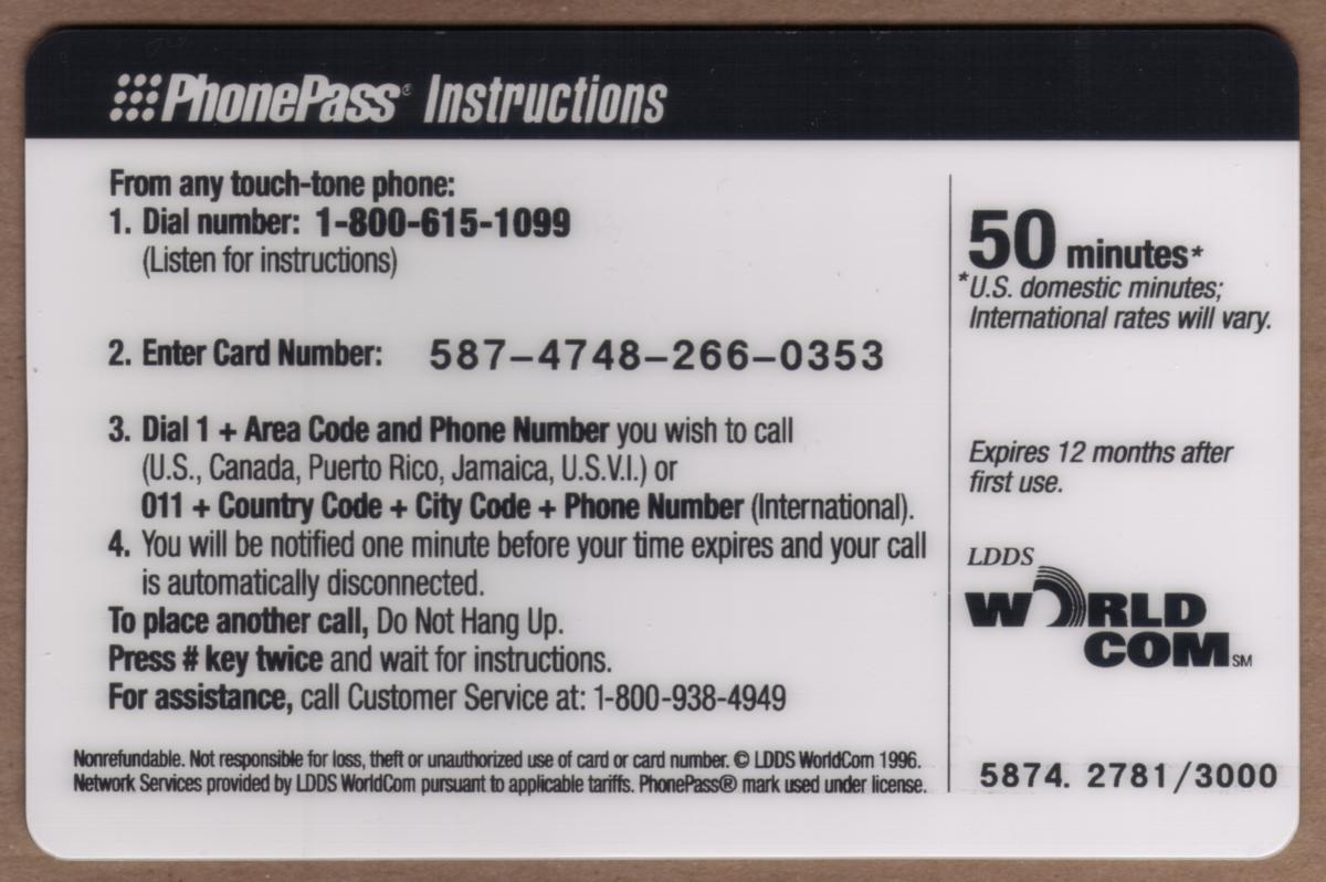 Since we have the world's largest inventory of USA phonecards for collectors, you will not necessarily receive the identical serial/batch/PIN number that we have scanned/pictured.