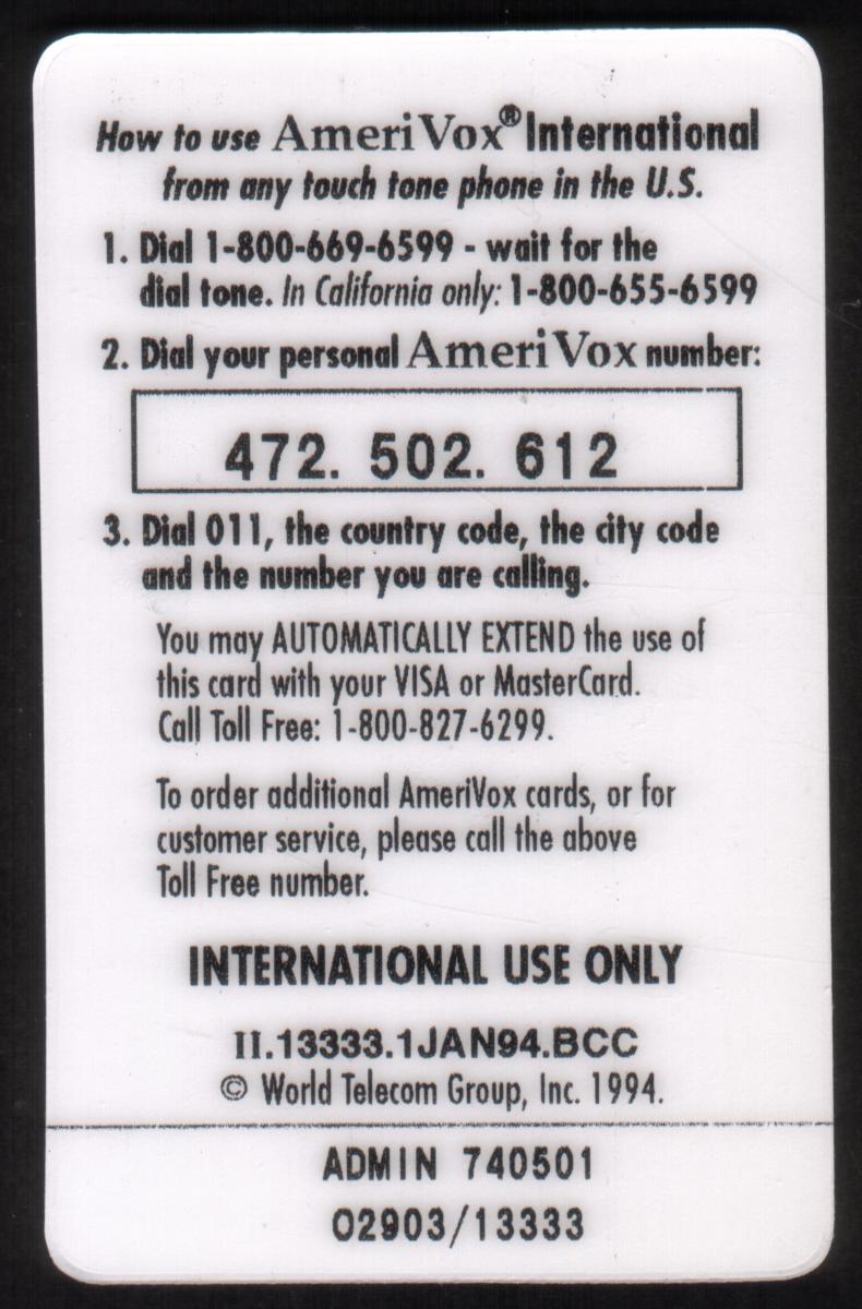 Since we have the world's largest inventory of USA phonecards for collectors, you will not necessarily receive the identical serial/batch/PIN number that we have scanned/pictured.