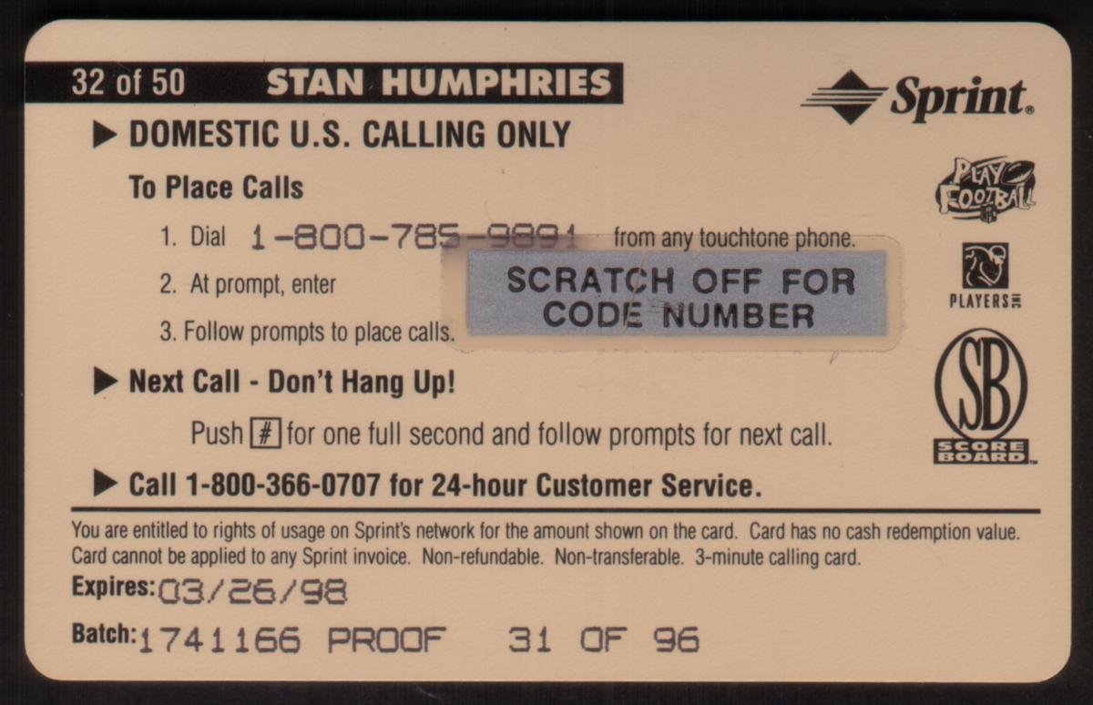 Since we have the world's largest inventory of USA phonecards for collectors, you will not necessarily receive the identical serial/batch/PIN number that we have scanned/pictured.