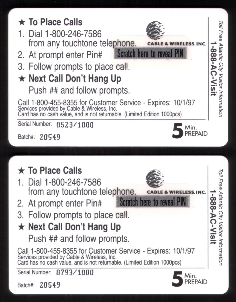 Since we have the world's largest inventory of USA phonecards for collectors, you will not necessarily receive the identical serial/batch/PIN number that we have scanned/pictured.