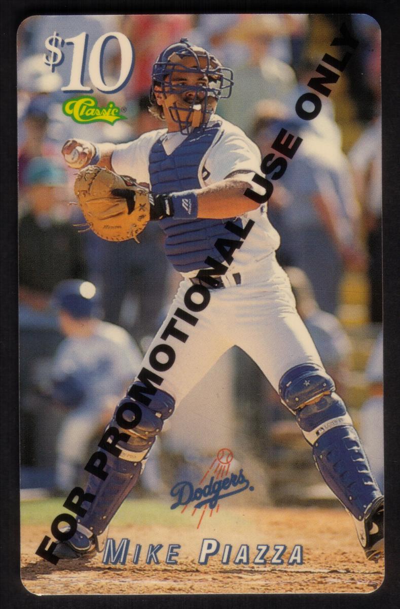 The card is intended for promotional purposes, as stated on the front, and features clear, bold text with the player’s name, team, and league prominently displayed. This item is a collectible baseball card celebrating Mike Piazza and his career in professional baseball.