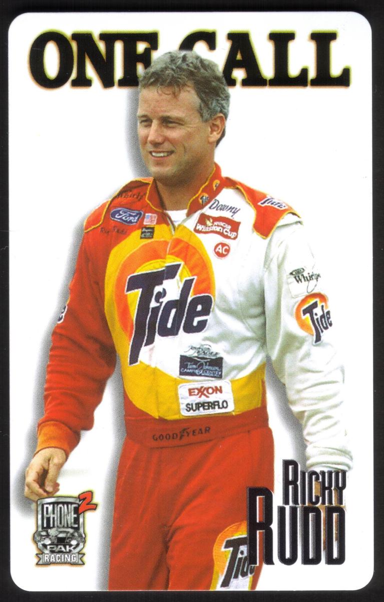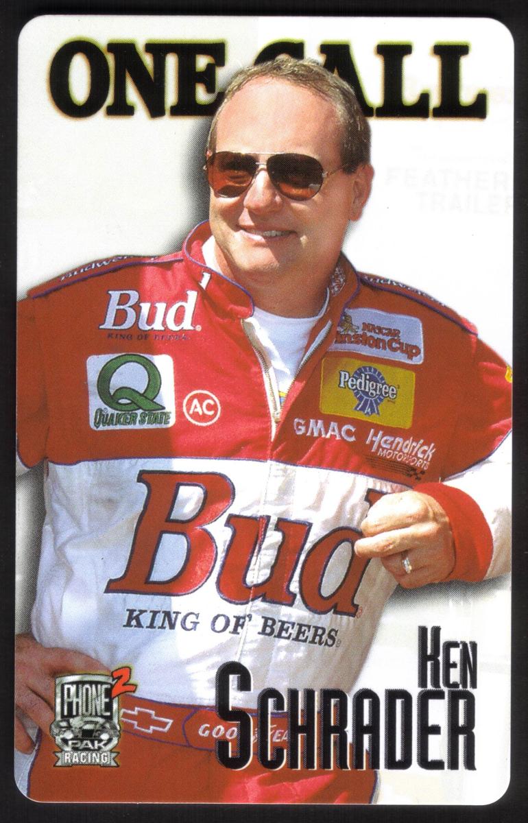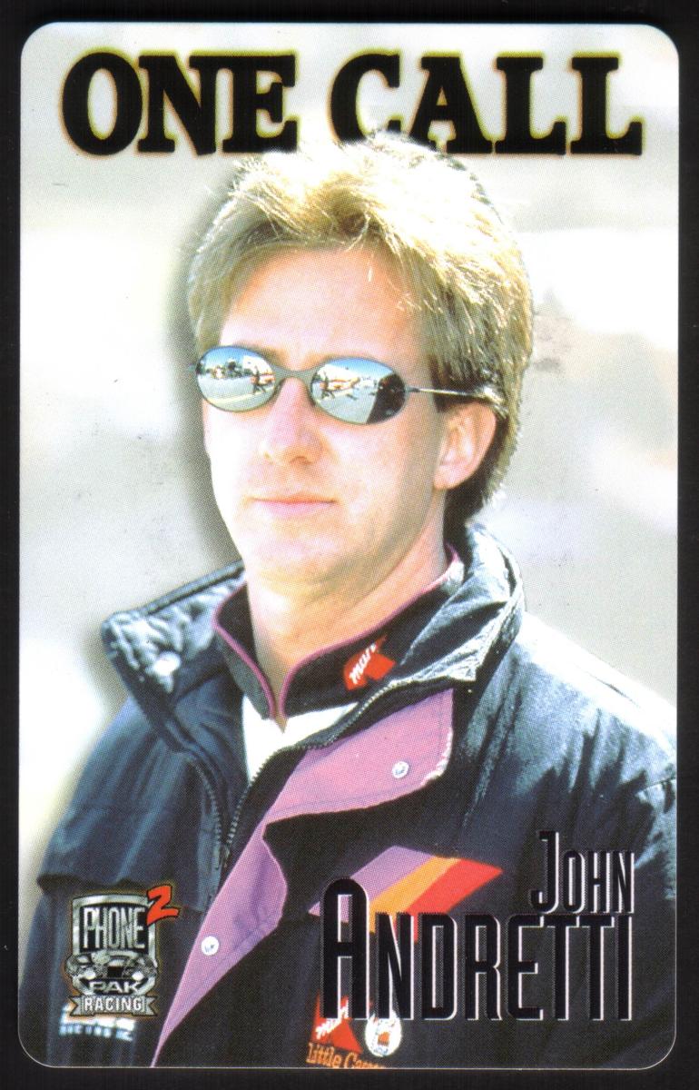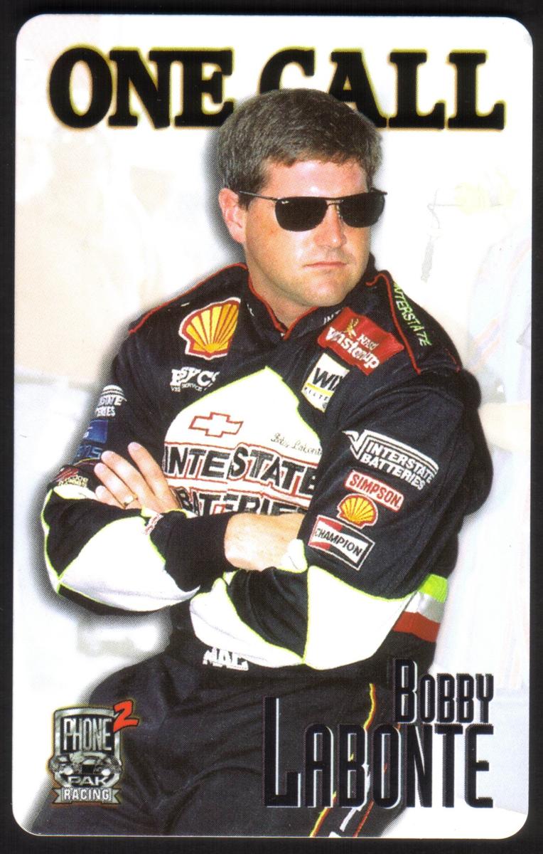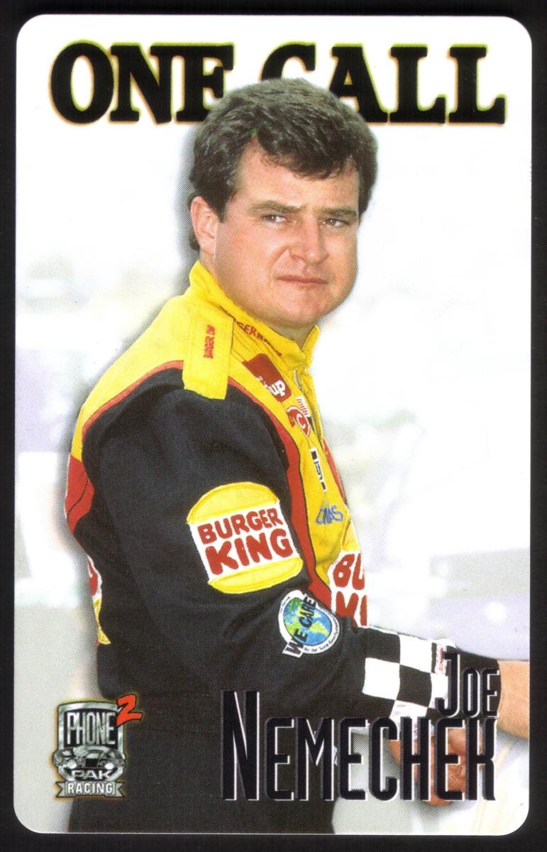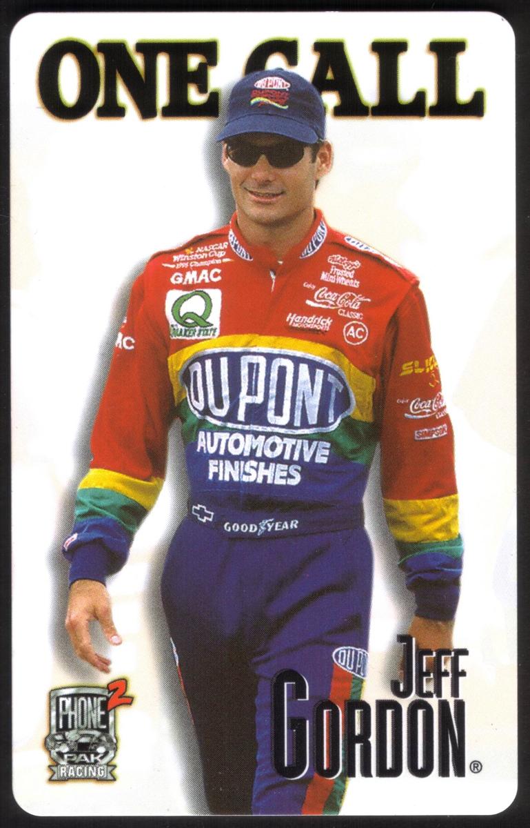 This collection of phone cards features prominent NASCAR drivers and personalities, each depicted in a clear photographic portrait centered on a white background with the large text "ONE CALL" at the top. Each card contains the subject's name in bold letters at the lower right along with the "PhonePak Racing 2" logo at the bottom left. The set highlights some of the sport's most famous figures from the 1990s, showcasing their distinctive racing suits and sponsor branding.
