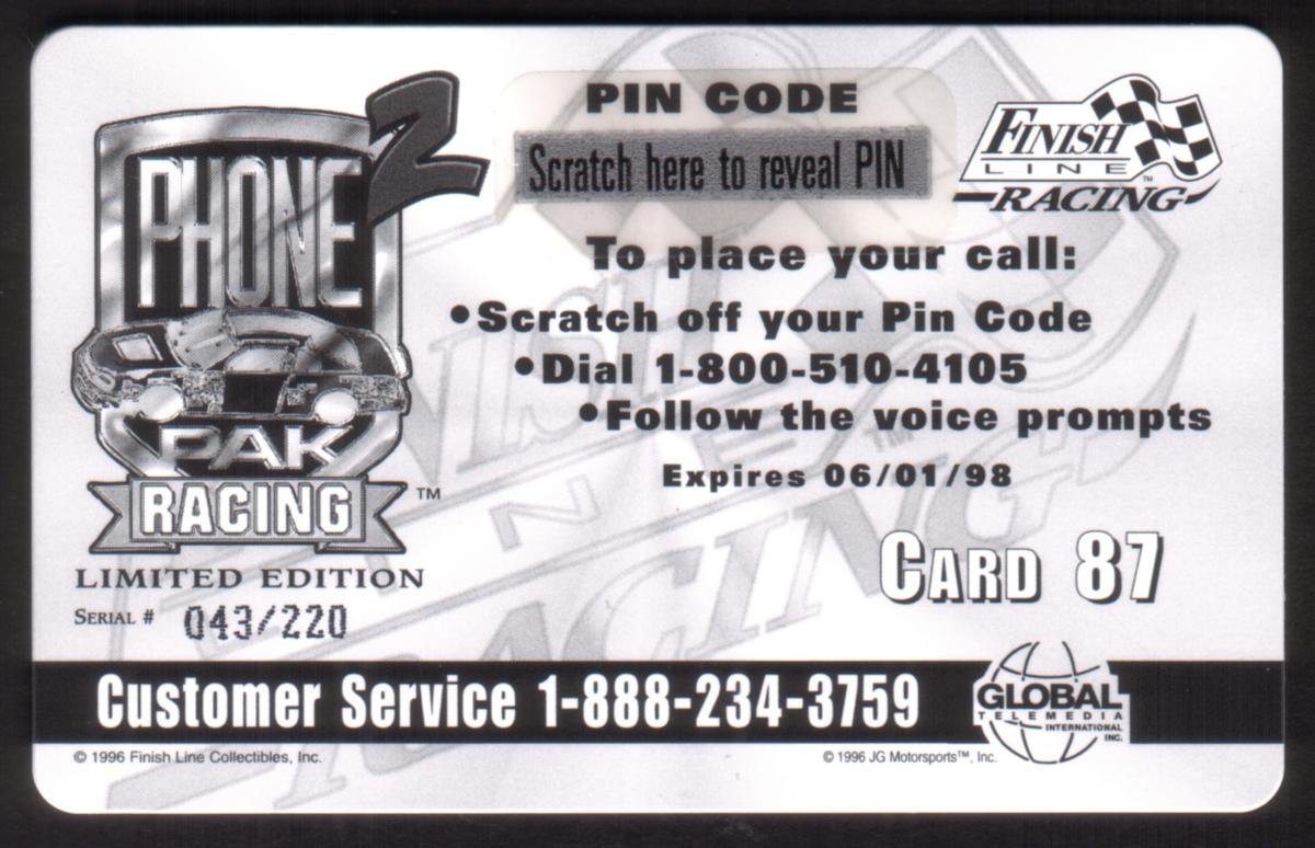 | PhonePak 2 (1997) $50. Jeff Gordon (Dupont, Coca-Cola) (Card #87) |