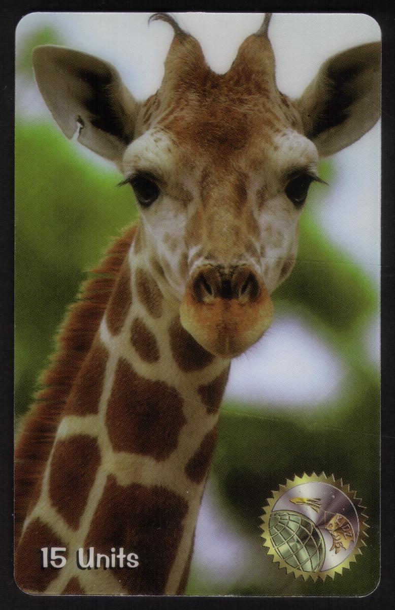 This phone card emphasizes wildlife, specifically giraffes, combining a vivid image of this iconic animal with functional telecommunication use. The design appeals to collectors interested in animal-themed cards and telecommunication memorabilia.