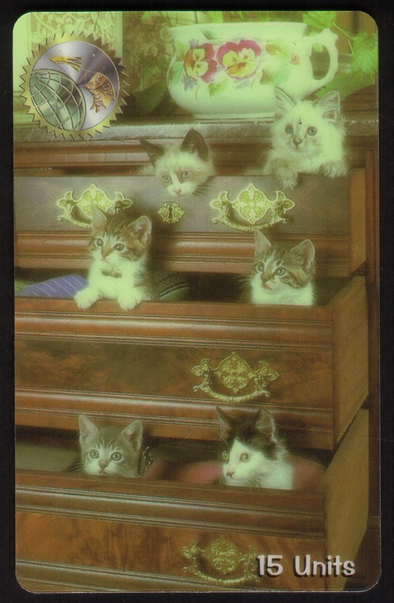 This card belongs to a series featuring animals, domesticated pets, and specifically kittens or pussycats. The overall presentation emphasizes the charm and innocence of young domesticated cats, making it a collectible item for enthusiasts of animals and pet-themed phone cards.