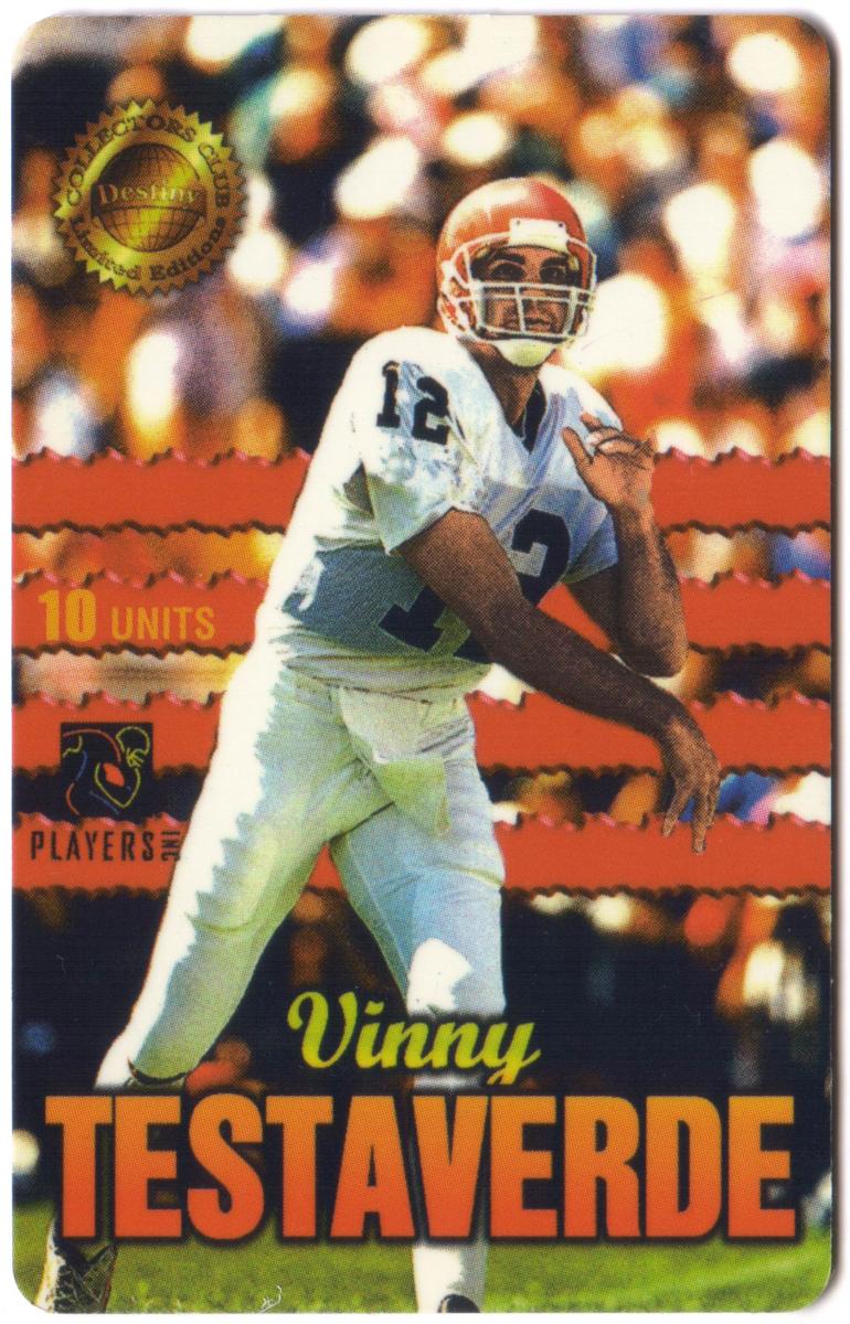 Overall, the card encapsulates Vinny Testaverde’s role as a quarterback for the Baltimore Ravens and serves as a limited edition collectible celebrating his NFL career. The imagery and text provide clear identification of the player, team, and sport without additional elements beyond the card’s football theme and player focus.