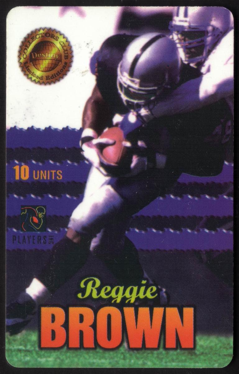 Overall, this phone card is a distinctly issued NFL collectible, celebrating Reggie Brown’s role with the Detroit Lions. The limited edition numbering and specialized theme make it a notable item for collectors interested in football memorabilia.