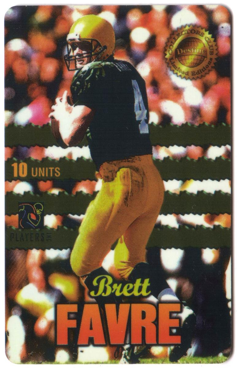 Produced by Destiny Telecomm, this item is a collectible card that showcases a celebrated figure in football history. The combination of Brett Favre’s image, the official NFL branding, and the limited-edition numbering makes it a notable collectible for fans of the sport and memorabilia collectors.