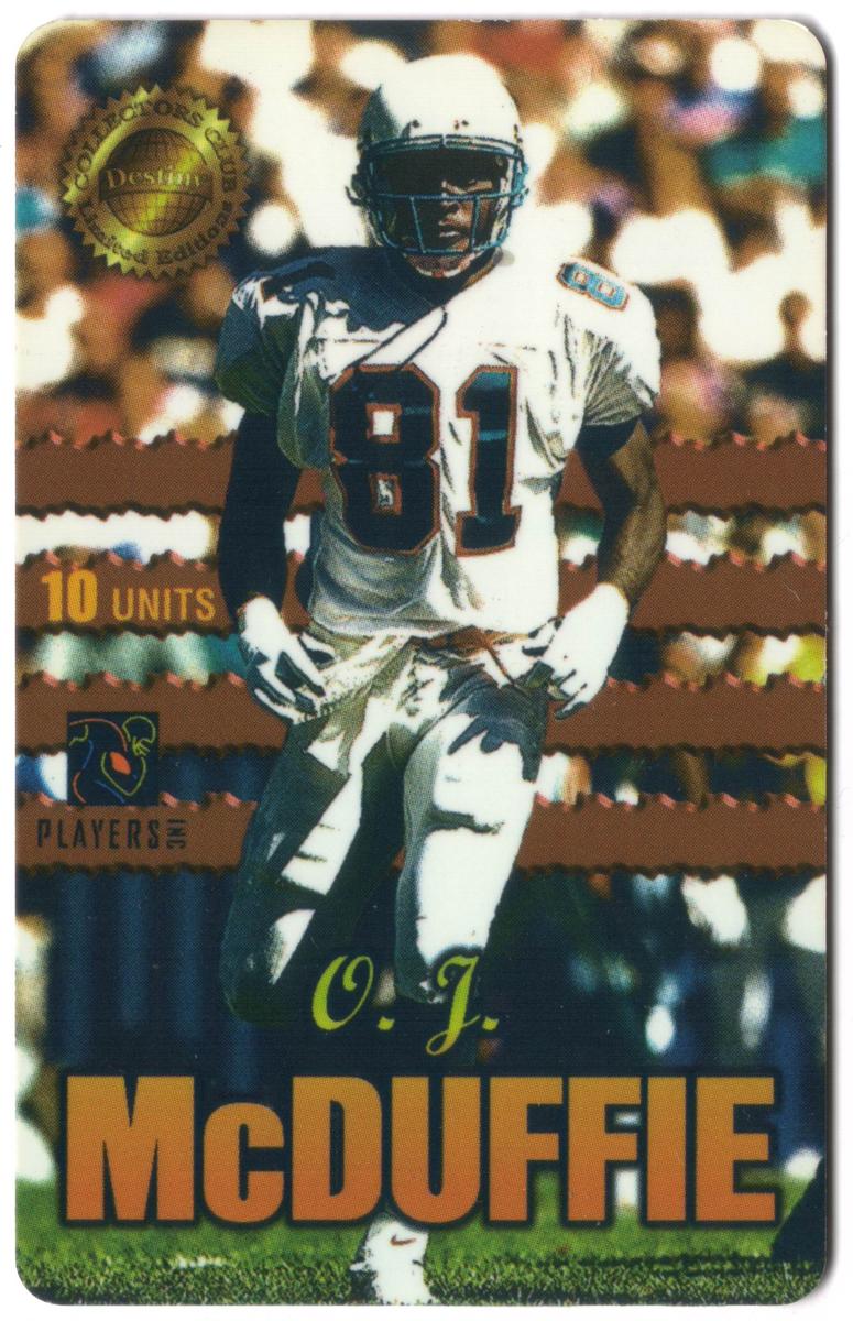 Overall, this item represents a specialized football collectible focused on O.J. McDuffie’s career with the Miami Dolphins, connecting to the broader context of NFL sports collectibles. It is a Destiny Telecomm product that holds value for collectors interested in limited-edition NFL cards.