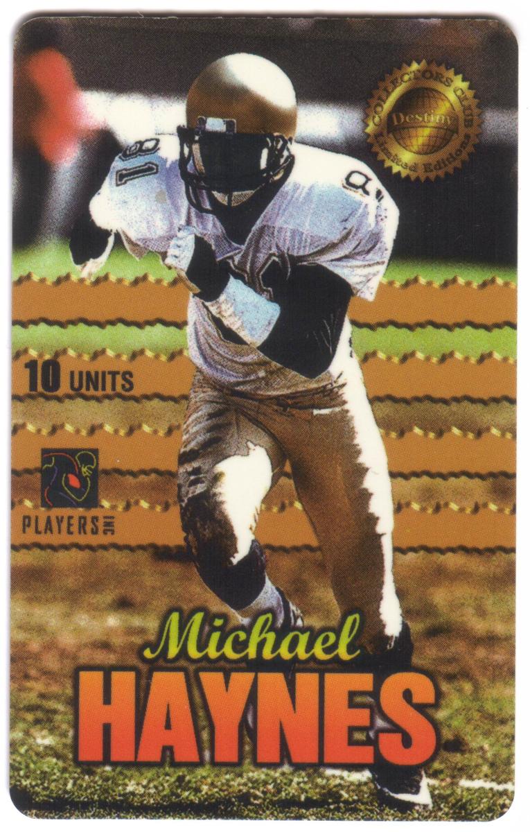 This item serves as a collectible card focused on professional American football players, specifically highlighting Michael Haynes’s role in the NFL with New Orleans. The card emphasizes the sport’s theme and the player’s identity without additional extraneous elements.