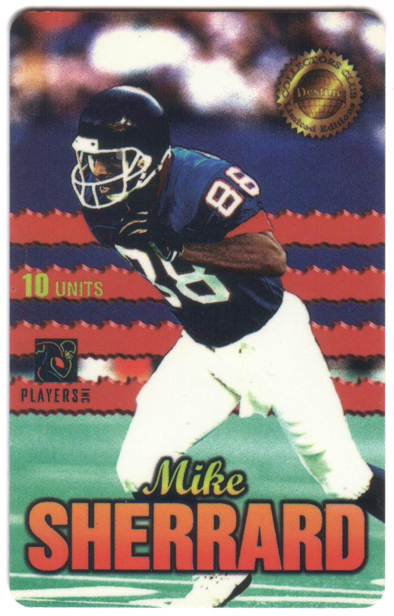 The card includes the official NFL and New York Giants logos. The name "Mike Sherrard WR NY Giants" is prominently displayed. The term "Destiny Telecomm" appears on the card, identifying the issuing brand and series associated with the collectible. The football theme is central, emphasizing professional NFL gameplay and players.