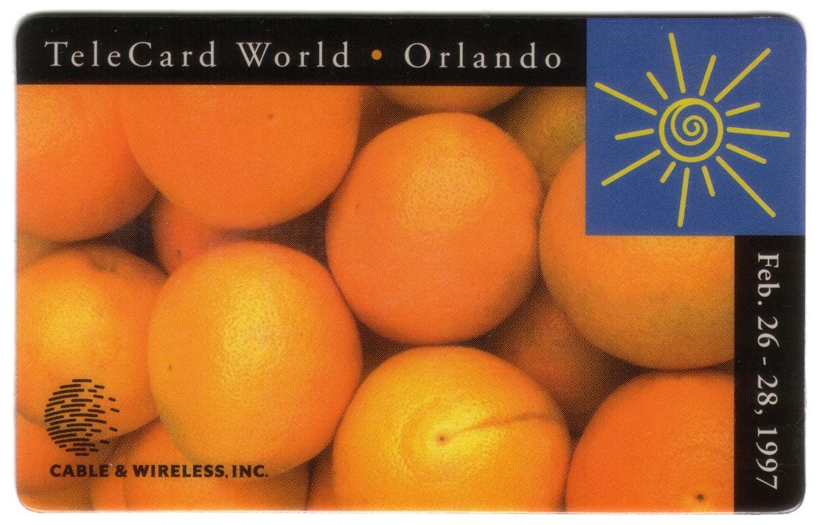 Additional text includes the names "WorldCom" and "Cable & Wireless," denoting the telecommunications companies involved with the card. The card blends practical telecommunication value with a collectible depiction of Orlando, a city known for tourism, making it both functional and visually appealing.