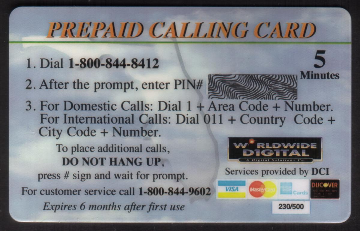 Since we have the world's largest inventory of USA phonecards for collectors, you will not necessarily receive the identical serial/batch/PIN number that we have scanned/pictured.