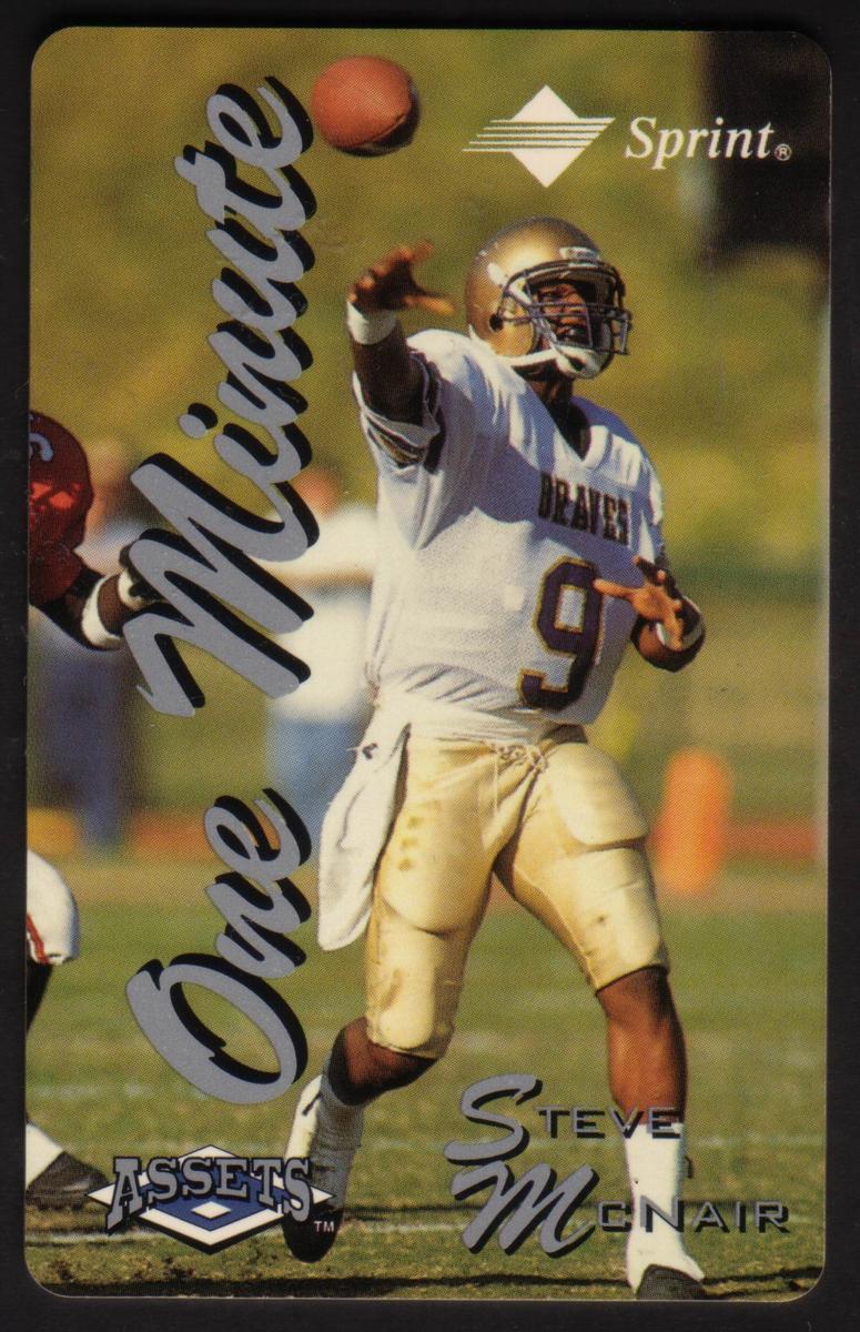 No additional team logos or player numbers are shown on the card, maintaining a clean and focused presentation centered on Steve McNair and his football career. The card’s style and layout reflect its purpose as a collectible piece from the 1 Minute Assets Series by The Score Board Inc.