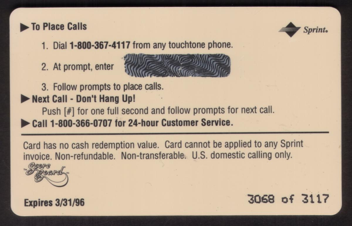 Since we have the world's largest inventory of USA phonecards for collectors, you will not necessarily receive the identical serial/batch/PIN number that we have scanned/pictured.