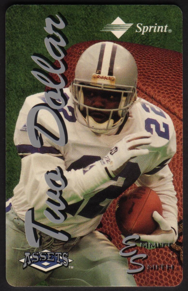 This card is part of the Assets Series #2 released in 1995 and dated 03/31/96. It connects to the National Football League (NFL) and highlights Emmitt Smith, who is a noted Dallas Cowboys football player during that era. The card has a $2 value as denoted on the front.