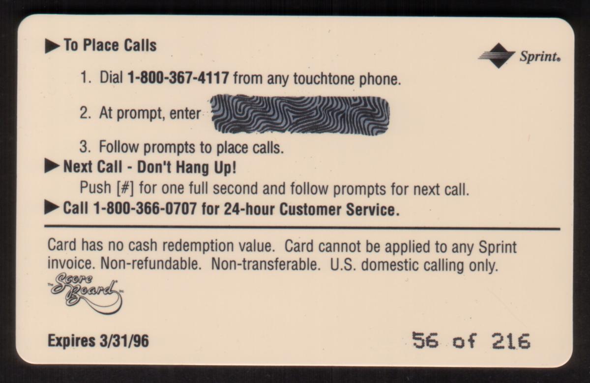Since we have the world's largest inventory of USA phonecards for collectors, you will not necessarily receive the identical serial/batch/PIN number that we have scanned/pictured.