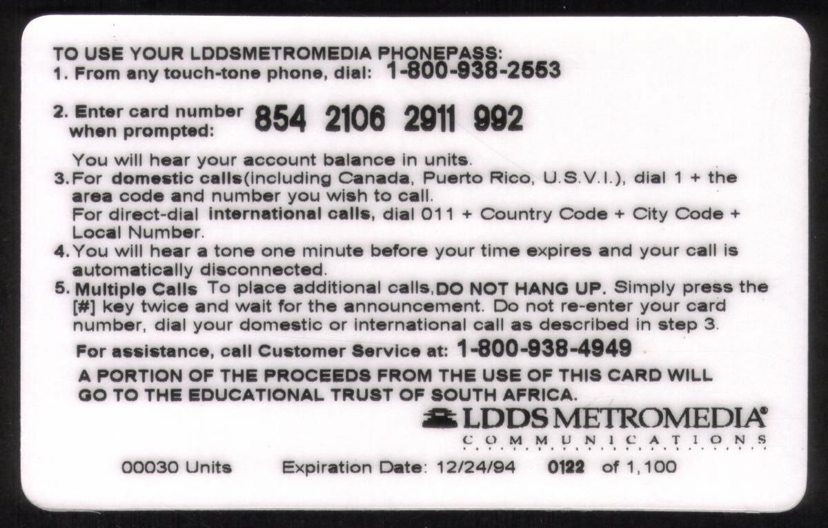 Since we have the world's largest inventory of USA phonecards for collectors, you will not necessarily receive the identical serial/batch/PIN number that we have scanned/pictured.