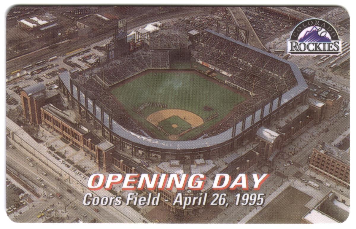 Together, this set of three collectible phone cards honors both the sport and the Colorado Rockies team by focusing on memorable baseball moments tied to Coors Field, emblematic of professional baseball in the United States. The vivid and detailed illustrations celebrate the excitement of MLB games, emphasizing the historic opening day and gameplay experiences at Coors Field.