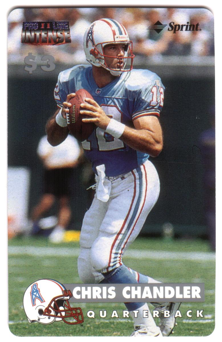 Additional textual elements include the player’s name, "Chris Chandler," and the year "1997." The card clearly emphasizes the football theme, associating it with the National Football League and focusing on the sport of football. The presentation and limited numbering contribute to its collectible value.
