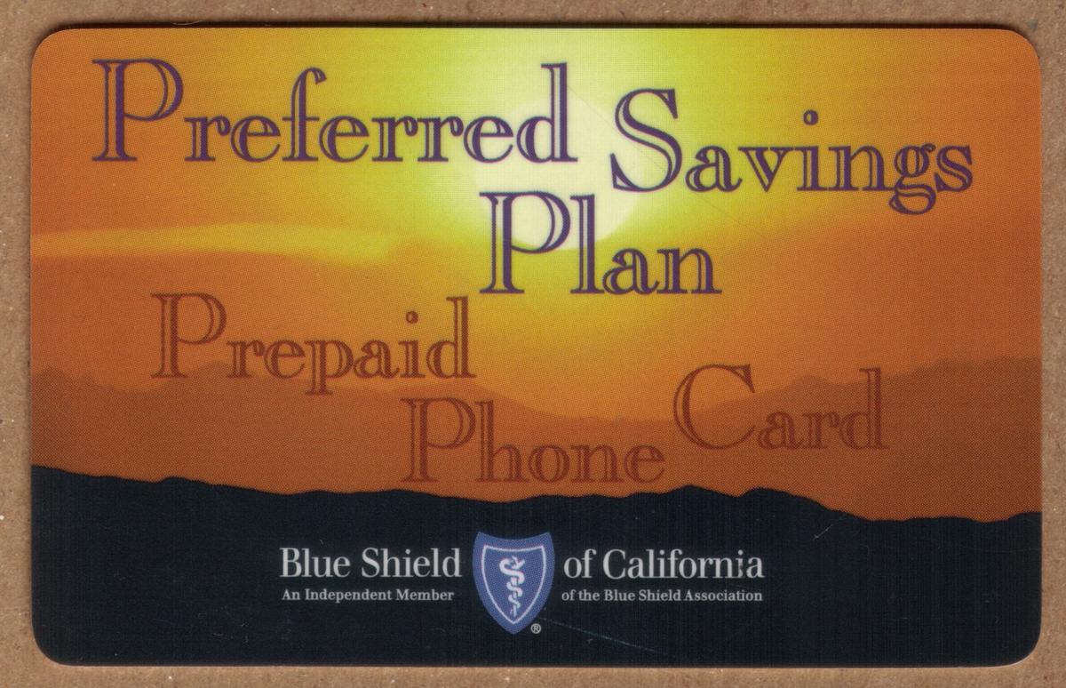 This card serves as a promotional item blending corporate logos, trademarks, and scenic imagery to represent Blue Shield’s health insurance offerings. Its incorporation of mountains and sunsets reinforces a serene and trustworthy theme aligned with health care coverage. The card’s clean and professional presentation makes it a distinct collectible piece connected to health insurance advertising and Blue Shield’s Preferred Savings Plan.