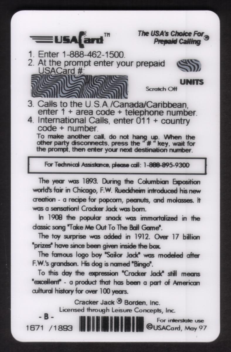 Since we have the world's largest inventory of USA phonecards for collectors, you will not necessarily receive the identical serial/batch/PIN number that we have scanned/pictured.