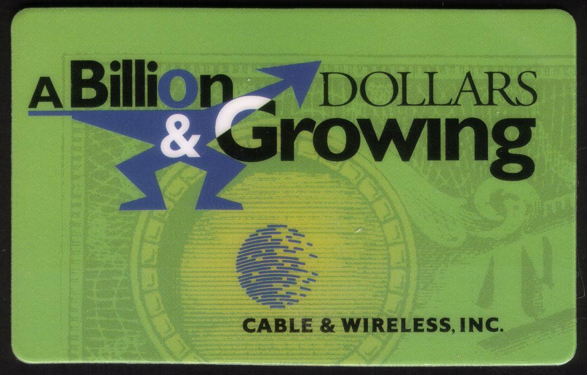 Below the headline, the text "CABLE & WIRELESS, INC." appears in black capital letters, identifying the corporate entity associated with this advertising item. The design focuses on conveying strong corporate branding and the theme of financial growth, reflecting the company’s message regarding expansion or success in the telecommunications industry.