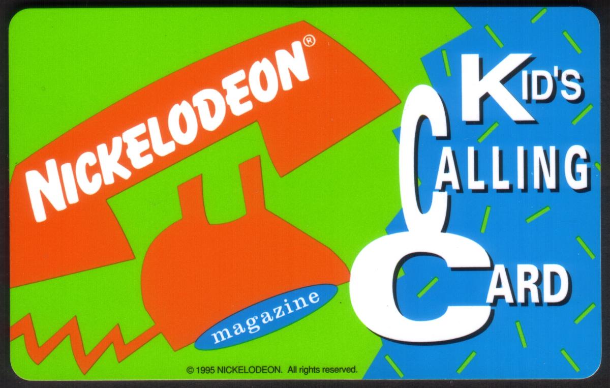 The card is marked with a copyright date of 1995 by Nickelodeon, indicating it is an officially licensed promotional item. It is associated with kid and children’s shows, telephones on phonecards, and the Nick Kids branding. The overall design is playful and colorful, reflecting the Nickelodeon brand’s appeal to a young audience.