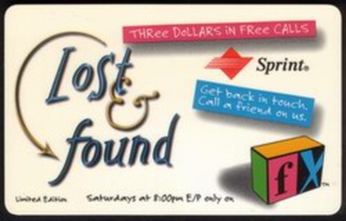 No other characters or imagery from the show are depicted, but the overall design clearly connects the card to the *Lost & Found* series on FX. The card is identified as a used collectible, associated with Sprint, and valued at $3.